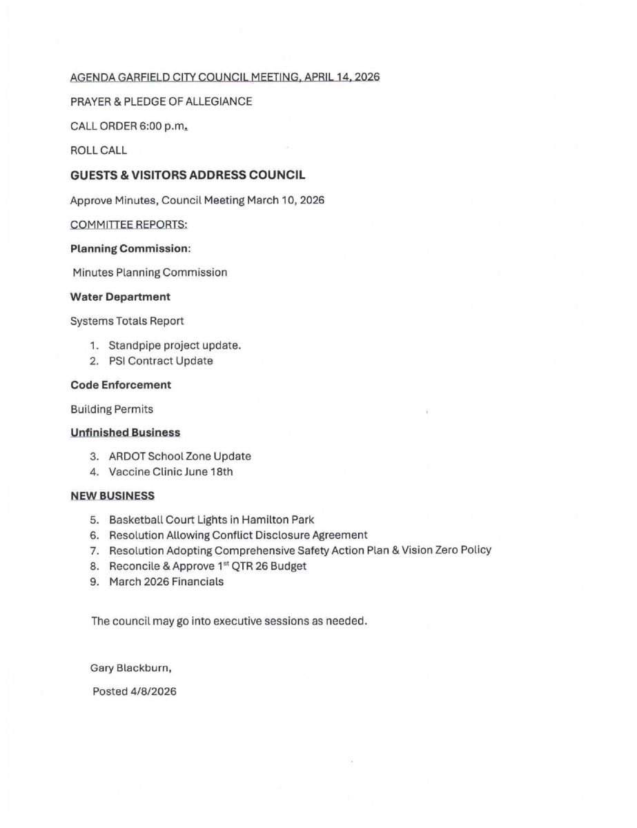 Welcome to City of Garfield City of Garfield....A Great Place to Live!